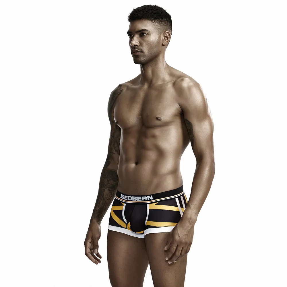 - SEOBEAN Men's Underwear Fashion Graffiti Printing Knitting Breathable Low Waist U-pouch Bag Push Up Boxers