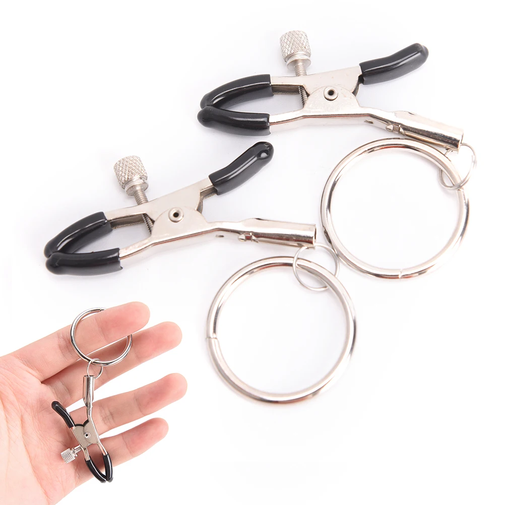 How to buy 1 Pair Hot Selling Metal Nipple Clamps With Rings Sex Games Breast Clip Bdsm Bondage Sex Toys For C