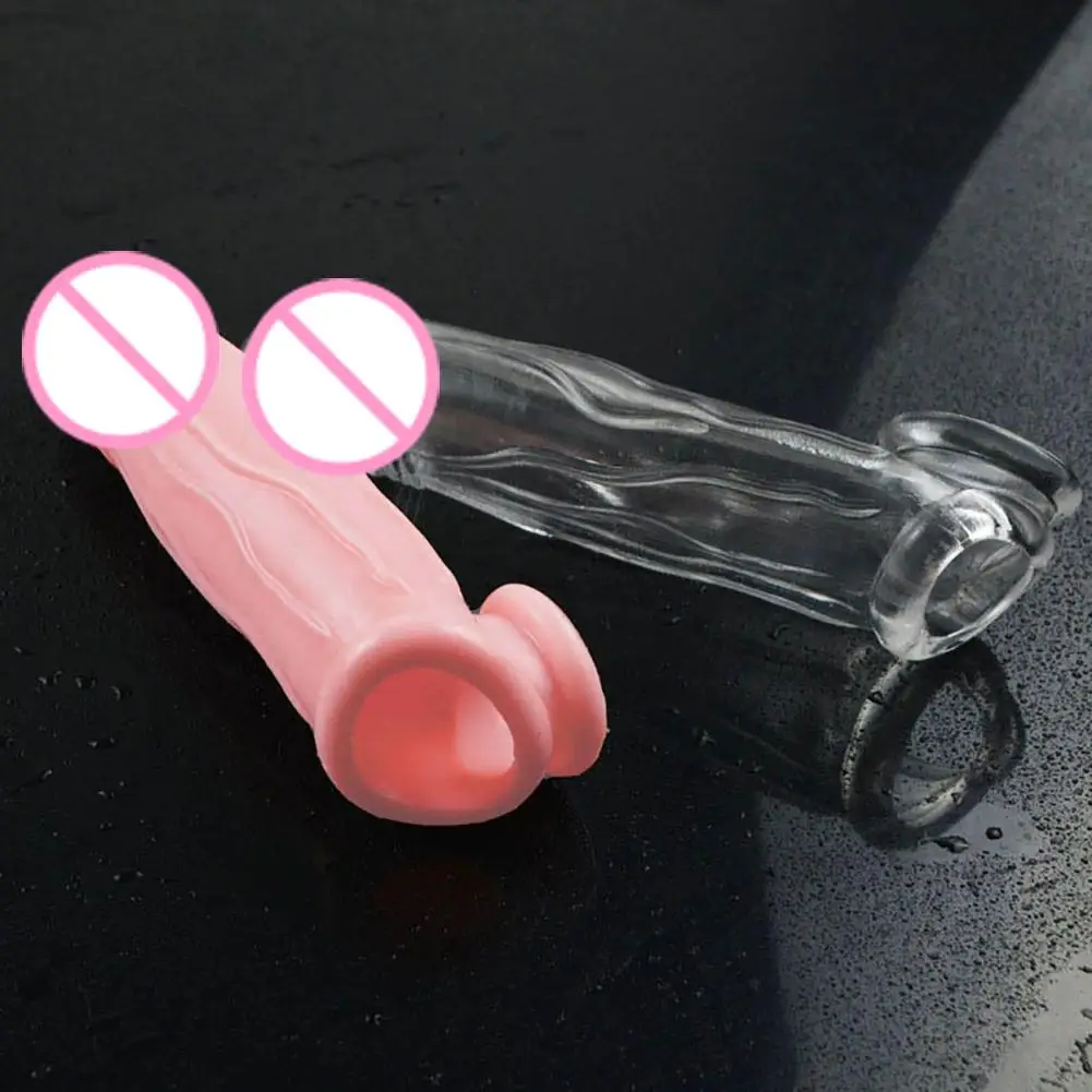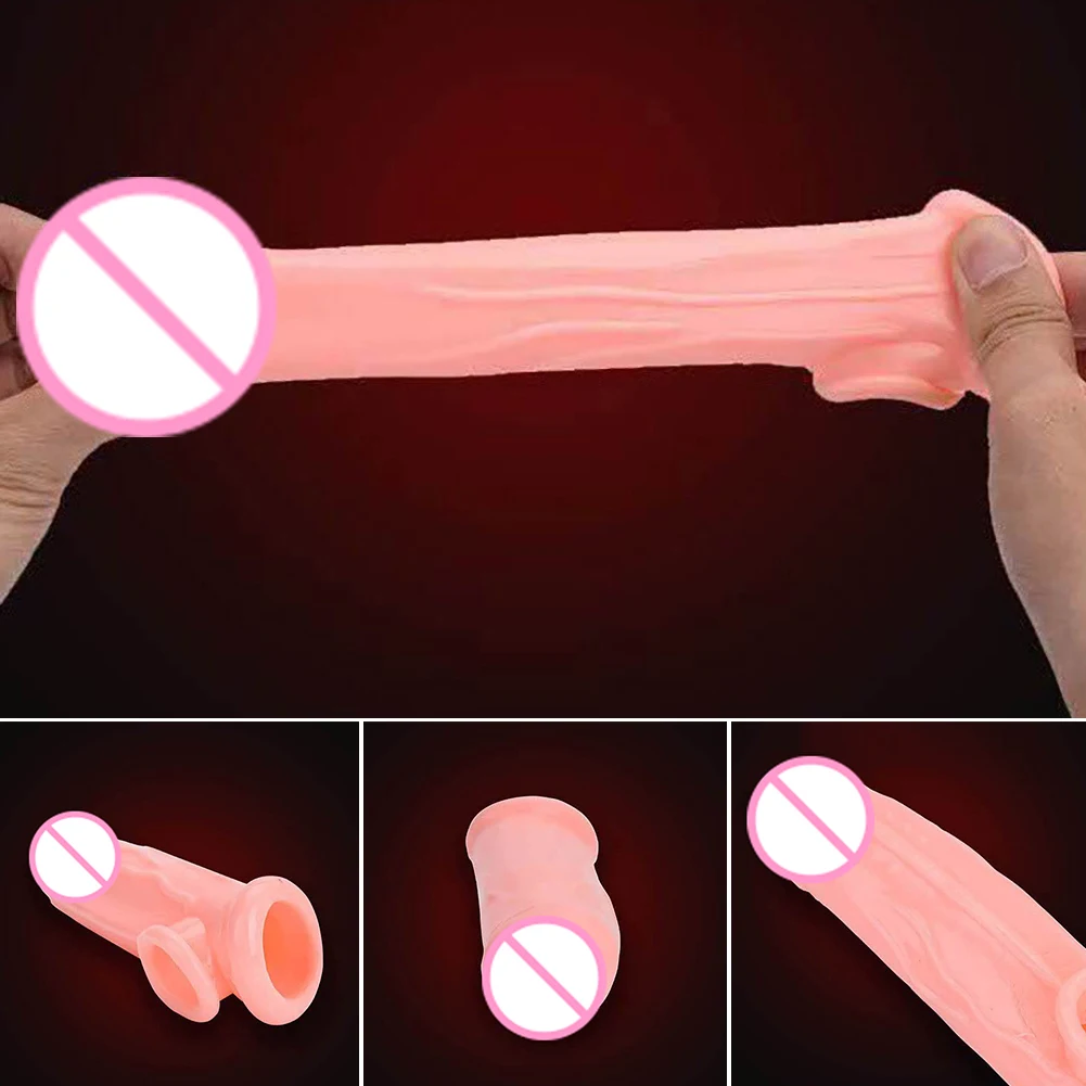 - Male Penis Enlargement Extender Silicone Penis Sleeve Delay Condom Sex Toys for Man Alargador De Pene Penis Stretcher Sex Toys