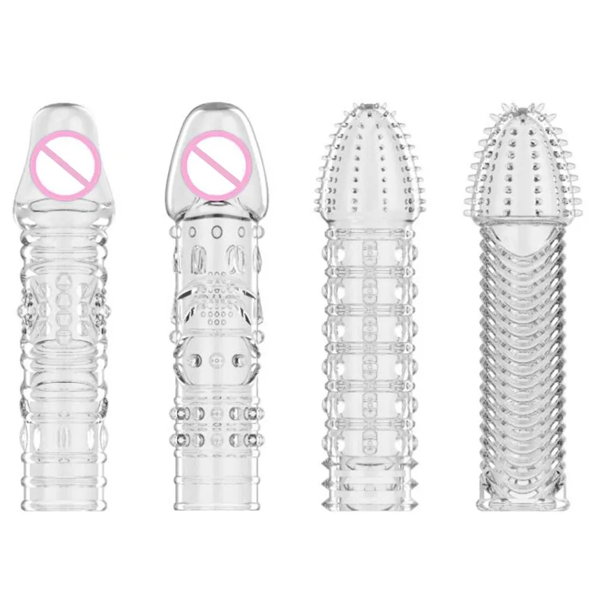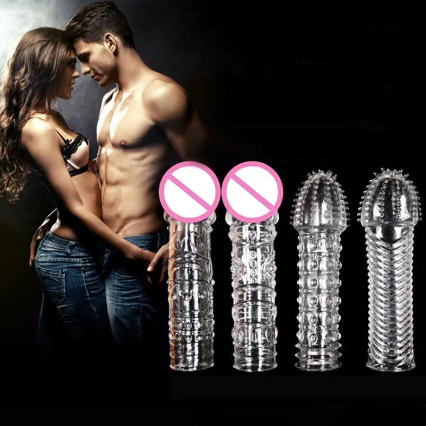 - Silicone Transparent Spike Condom Penis Sleeve Condoms Penis Enlargement Extender Dick Intimate Goods Adult Toys