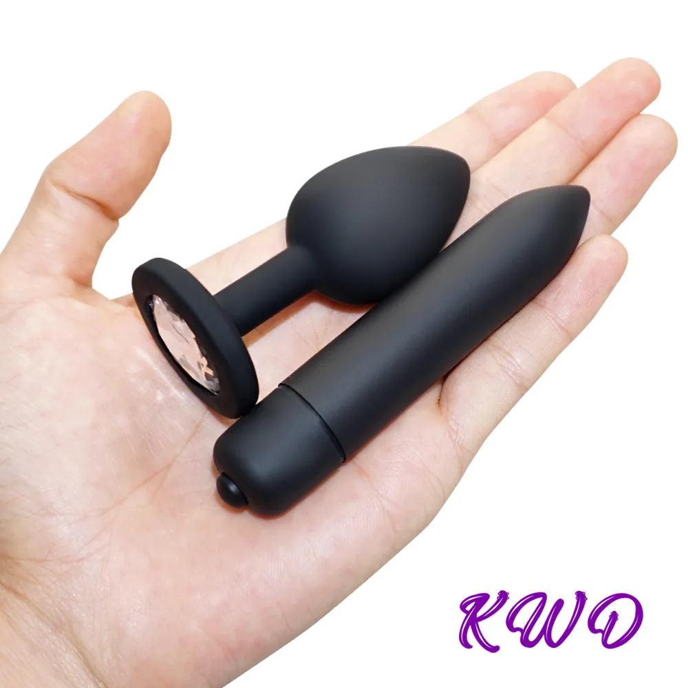 - Silicone Anal Plug Crystal Jewelry Silicone Butt Plug with Vibrator bullet Anal Sex Toys for Men Woman Gay Anal Masturbation