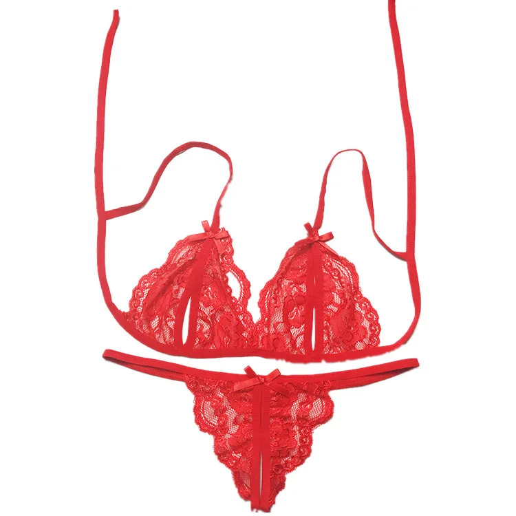 - Baby Doll Mujer Sexy Lace Lingerie Lenceria Sexy Hot Caliente Erotic Deep V Neck Teddy Transparent T-back+Lace Mask+Handcuffs