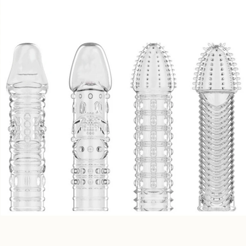 - Reusable Condoms Penis Extender Vibrator Penis Sleeve Enlargement Condom Time Delay Ejaculation Adults Sex Toys For Men Couple