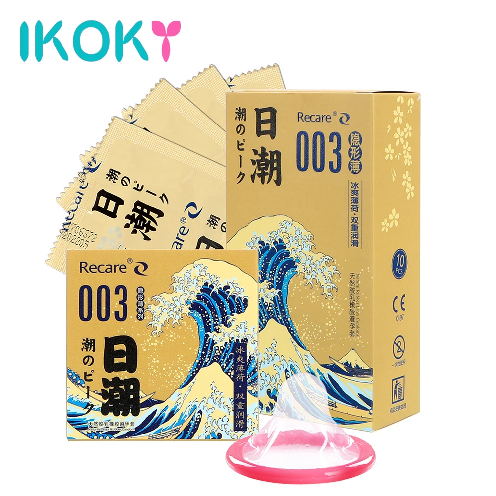 On sale IKOKY 3pcs/10pcs Ultra Thin Lubricated Condoms Natural Latex Ice feels Mint Smell Sex Toys For Men