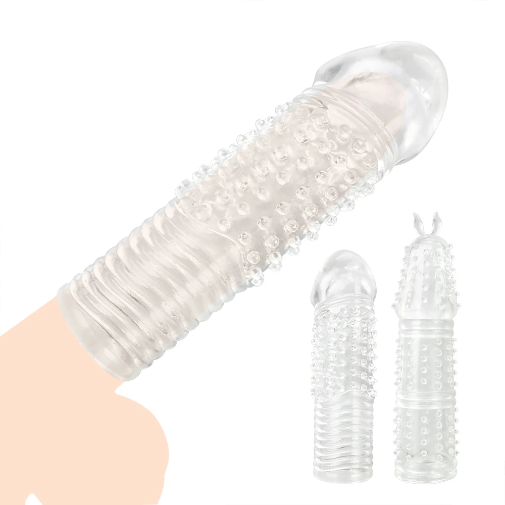 Affordable Penis Extender Reusable Condoms Penis Sleeve Transparent Adult Products Sex Toys for Men Cock Ring